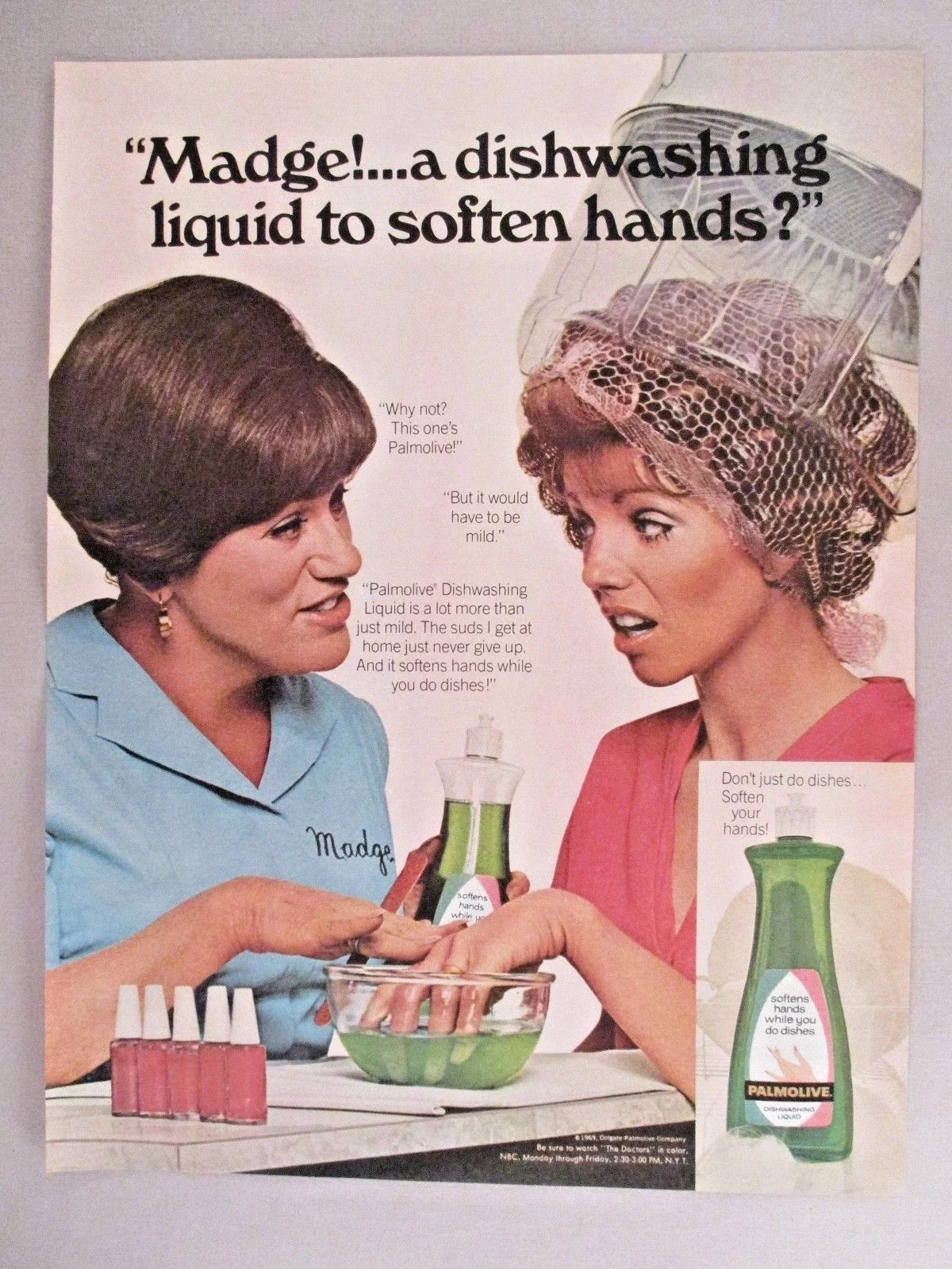 Additionally, we skipped down Memory Lane in the discussion of ladylike cleaning products that both cleanse AND condition because heaven forbid the Little Mister come home and find a clean sink but rough wifely hands!